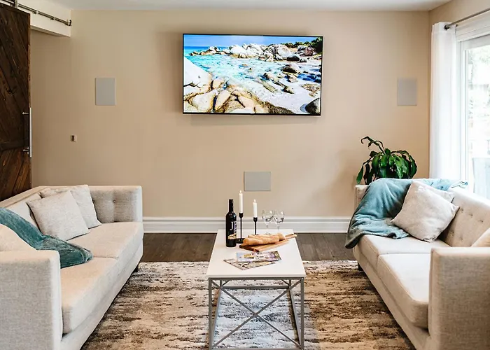 Goście mogą korzystać z takich udogodnień jak park wodny, słoneczny taras i miejsce na piknik. Centrum Edukacyjne dla Dzieci w Hamilton znajduje się 6 km od Luxurious Lakeview Oasis In The Heart Of Hamilton With Large Backyard, a Park nadbrzeżny Spencera Smitha leży w 4 km.